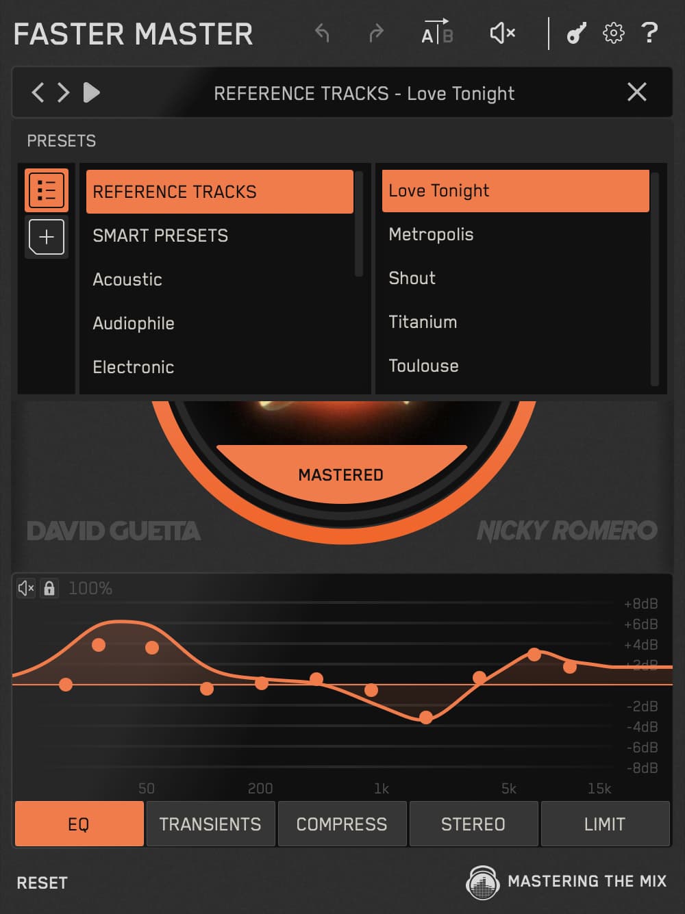 Load FASTER MASTER as the final plugin in your mastering chain.