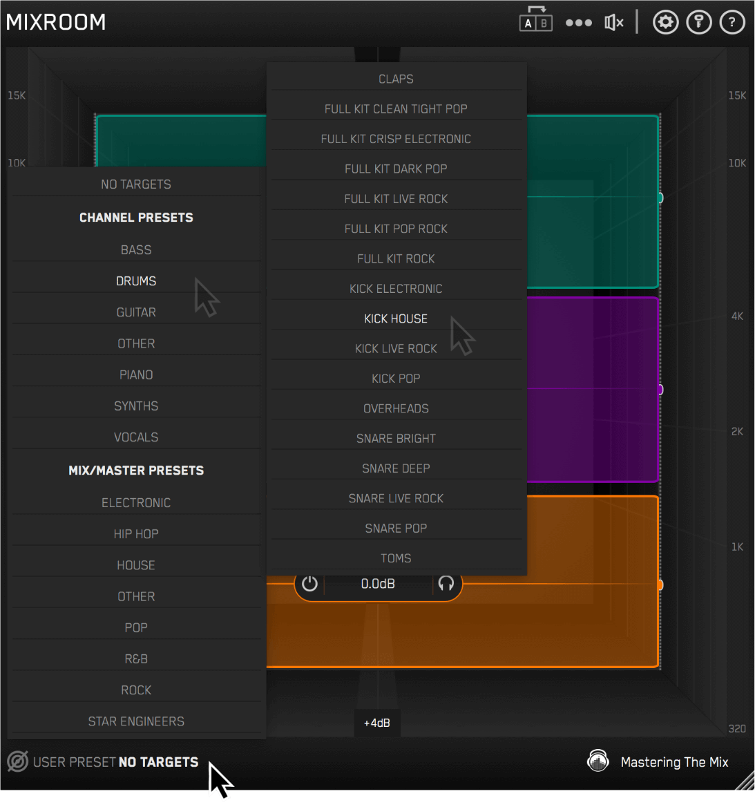 To get the most value from MIXROOM, start by selecting a preset that best suits the material you’re working on.