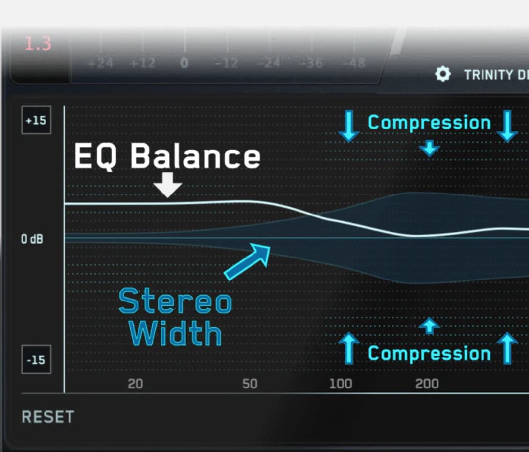 The visuals show you how to adjust your EQ balance, stereo width and compression to sound more like your reference track.