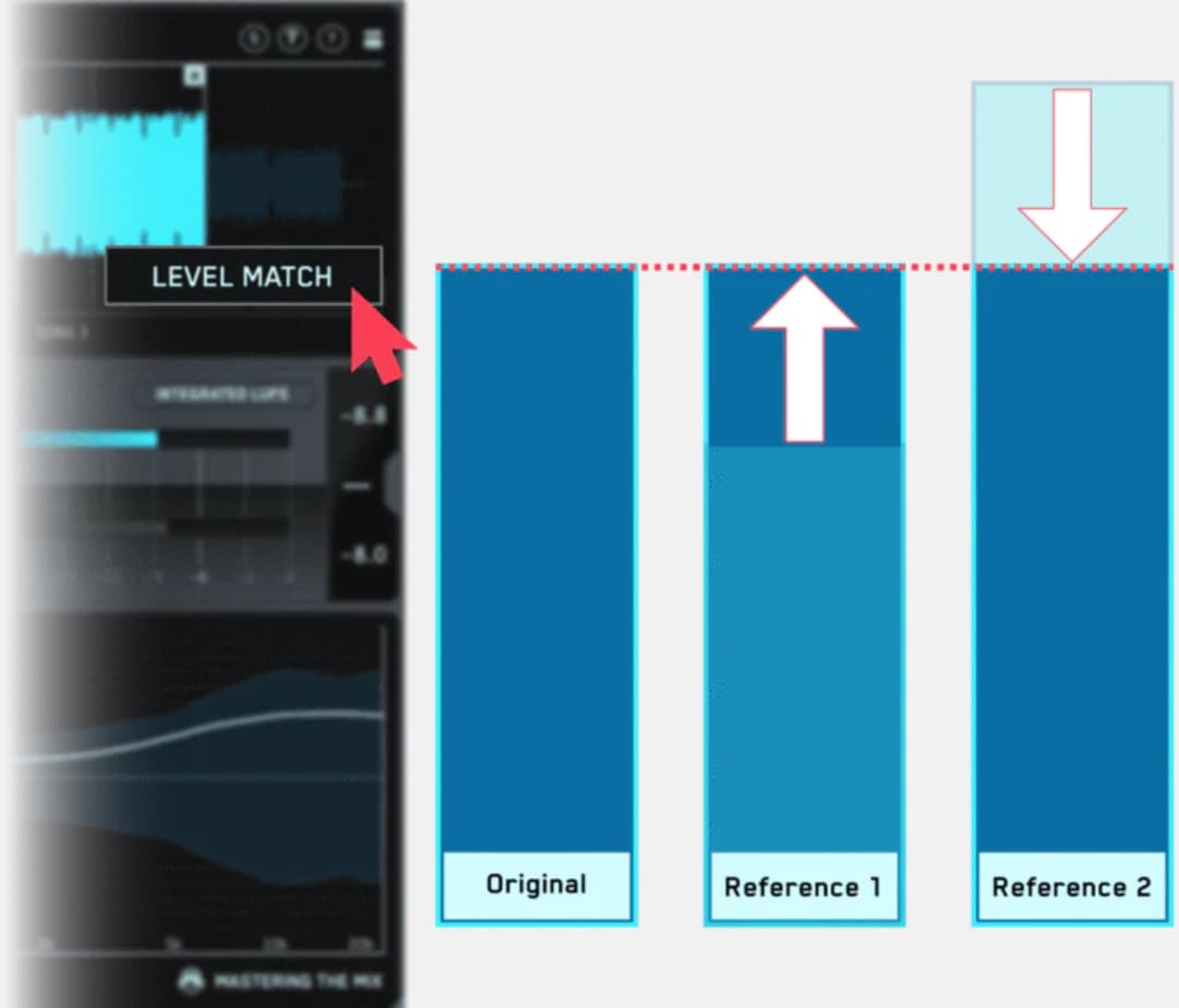 Level Match helps you compare your mix to the reference tracks at the exact same loudness, allowing you to make informed mixing decisions.